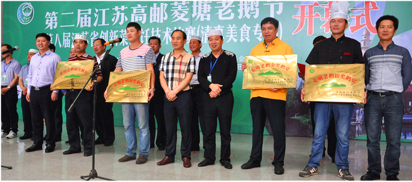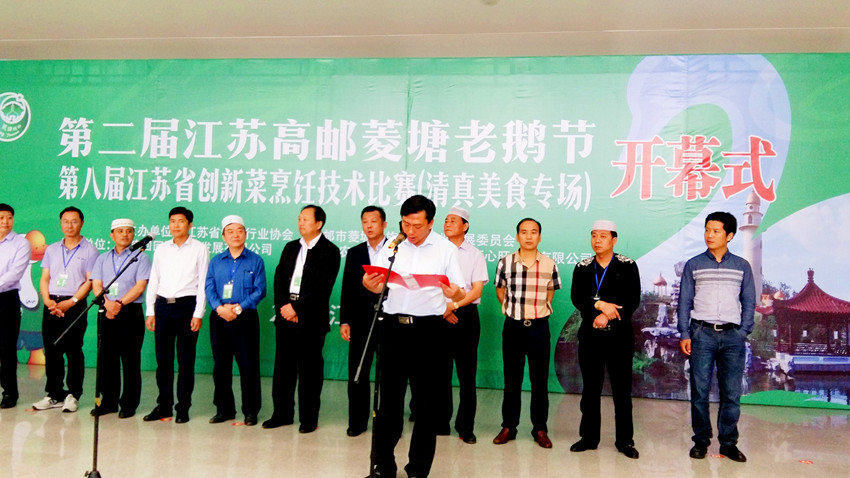 在端午佳節到來之際,江蘇省唯一的少數民族鄉——高郵市菱塘回族鄉隆重舉行第二屆江蘇高郵菱塘老鵝節暨江蘇省第八屆創新菜烹飪技術比賽(清真美食專場)。6月8日上午,在菱塘回族鄉民族文化宮室內廣場舉行了開幕式。省市餐飲行業協會、省市伊斯蘭教協會、高郵市政府、市旅游局相關領導、專家、部分外國友人參加了開幕式。南京鴨業協會會長、南京桂花鴨集團副總經理竇仁彬應邀出席開幕式并擔任比賽評委。公司旗下清真品牌“韓復興”與眾多清真美食一起參加了開幕式展銷會,引起了當地群眾和游客的濃厚興趣,展示了百年清真老字號的獨特魅力。