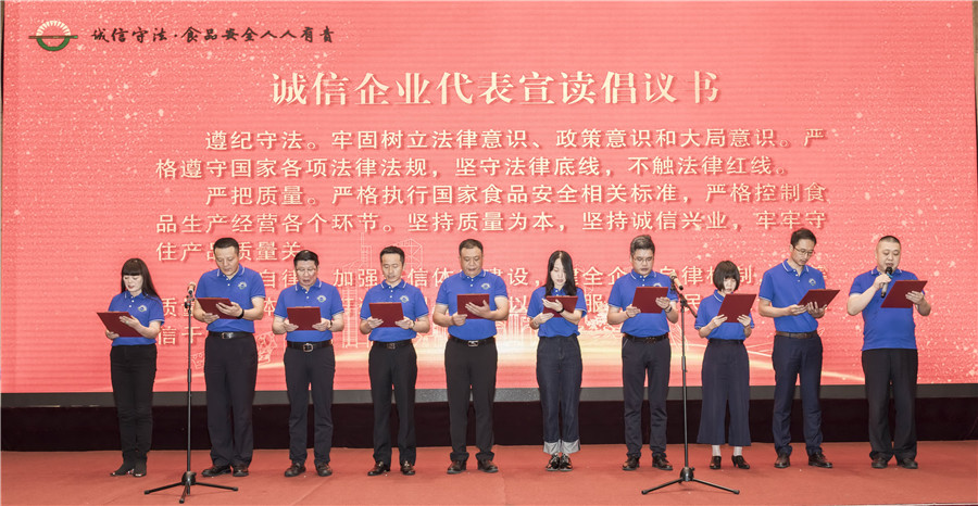 9月23日,以“誠信守法,食品安全人人有責”為主題的南京市2020年食品安全宣傳周主場活動暨食品安全“百場社區行”啟動儀式在江蘇飯店舉行。南京市政府副秘書長王國夫出席啟動儀式并宣布宣傳周啟動,市食安辦主任、市場監管局局長時新峰介紹本屆宣傳周活動情況,參加活動的有市食安委成員單位負責人、食品安全專家、媒體代表、社區居民代表等。我集團公司總經理徐偉受邀出席主場活動,并帶領9家食品企業代表宣讀了“誠信倡議書”。