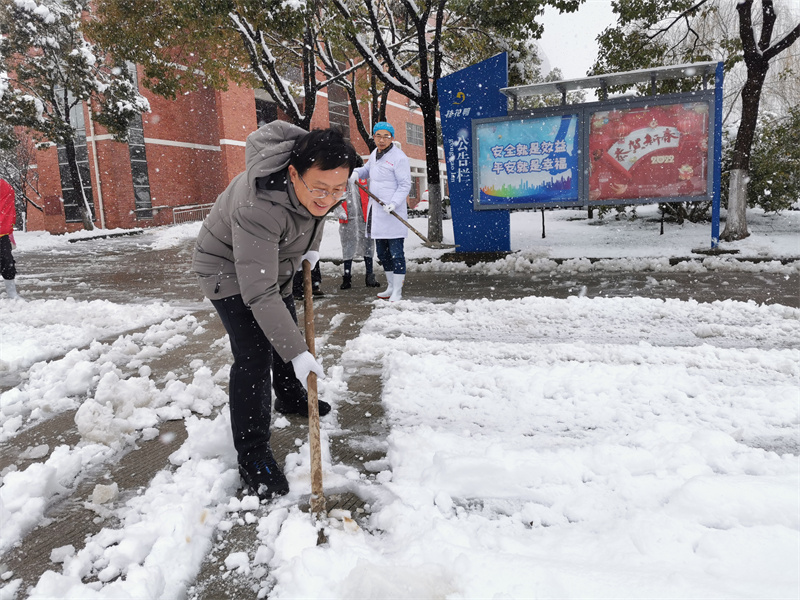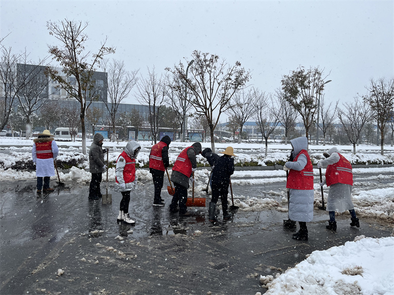 盼望著盼望著,南京迎來2022年第一場降雪。新年開工第一天,大雪漫天飛舞,道路層層冰凍,走進桂花鴨濱江生產基地,銀裝素裹,分外美麗!但厚厚的積雪給大家出行帶來了諸多不便,為暢通交通,方便出行,大家不畏嚴寒,頂著風雪,揮舞著鐵鍬開始對廠區內以及路上的積雪和結冰進行清掃。大家齊心協力,配合默契,鏟的鏟、推的推、掃的掃,忙碌的身影構成了一道亮麗的風景線。雖然室外溫度很低,但大家勞動的熱情和團結的力量讓這個冬日變得格外溫暖!