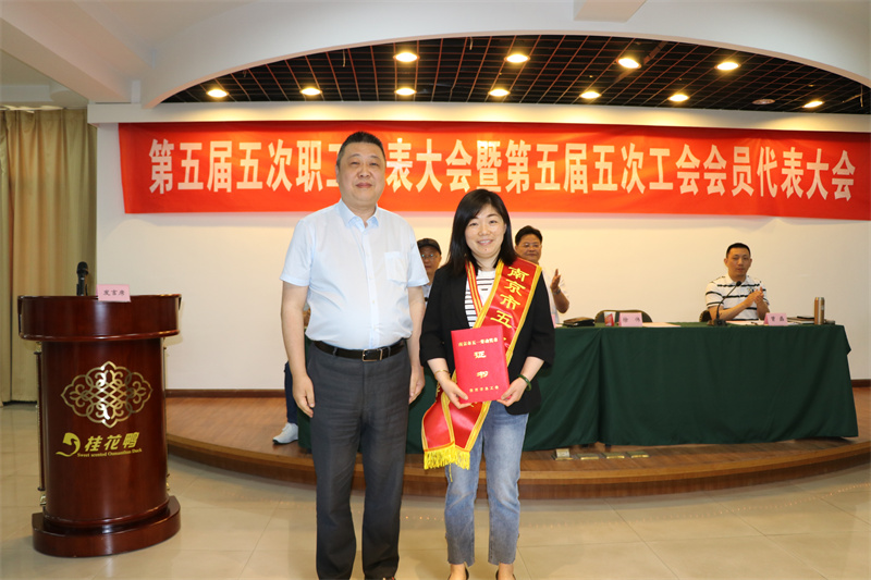 ▲公司總經(jīng)理徐偉同志為“2022年度南京市五一勞動(dòng)獎(jiǎng)?wù)?rdquo;曹玉蘭同志頒發(fā)證書及獎(jiǎng)?wù)?/span>