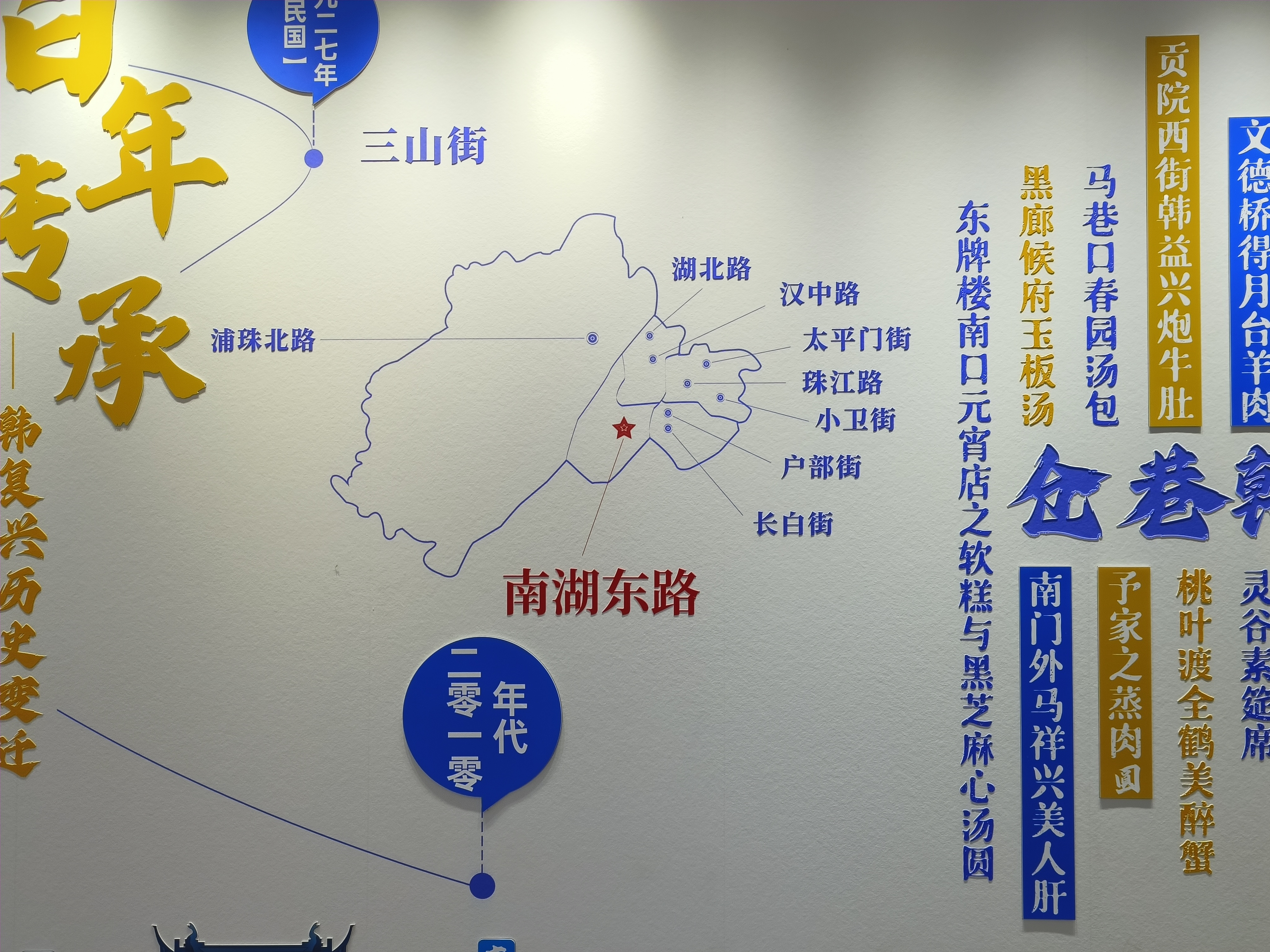 最引人注目的要數那片文化墻,不僅彰顯了韓復興在“鴨行業”158年的江湖地位,還體現了鹽水鴨工藝的傳承與創新。