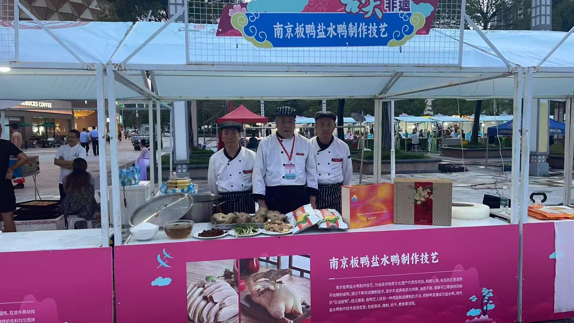 特別是南京板鴨鹽水鴨制作技藝的展位前,里三層外三層,圍得那叫一個(gè)水泄不通。